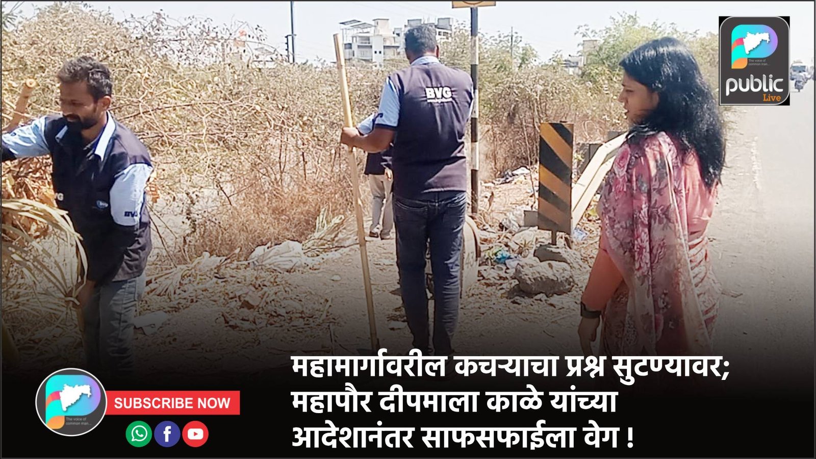 महामार्गावरील कचऱ्याचा प्रश्न सुटण्यावर; महापौर दीपमाला काळे यांच्या आदेशानंतर साफसफाईला वेग !