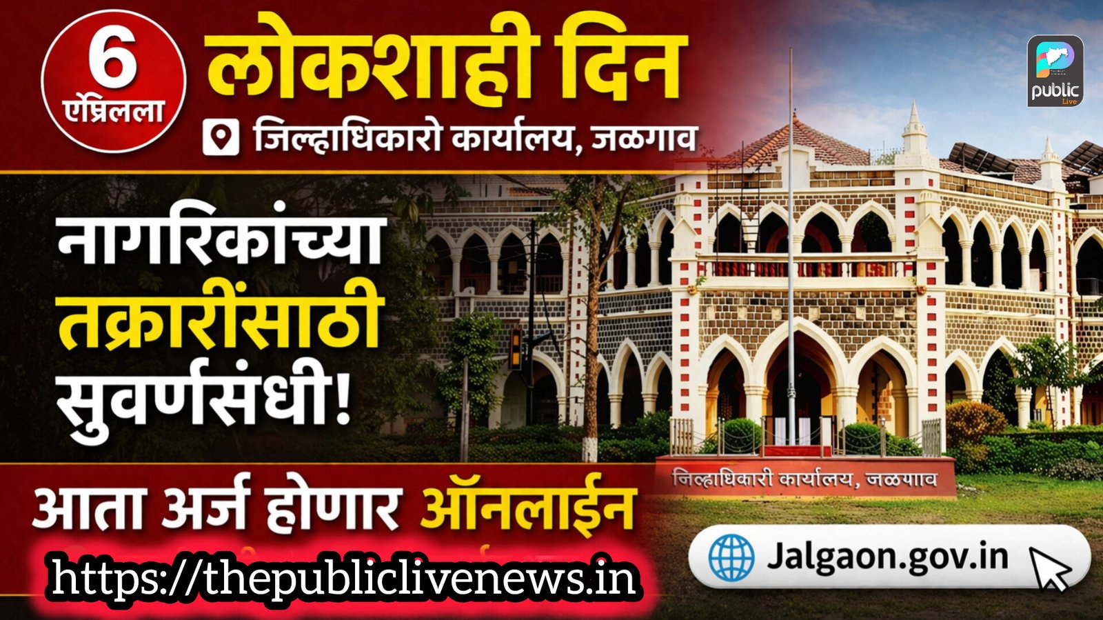 जळगाव | दि. 2 (जिमाका) जिल्हा प्रशासनातर्फे दर महिन्याच्या पहिल्या सोमवारी आयोजित करण्यात येणारा जिल्हास्तरीय लोकशाही दिन सोमवार, दिनांक 6 एप्रिल 2025 रोजी सकाळी 10.30