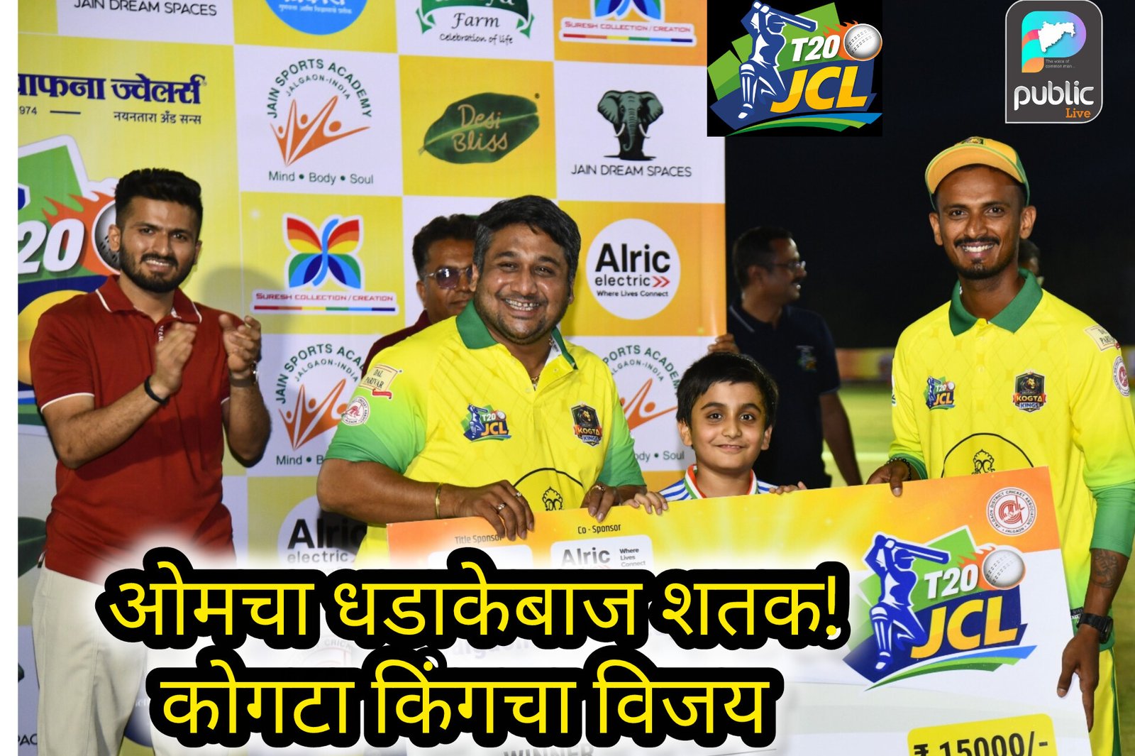 ‘ओम’ च्या धुवांधार शतकाने कोगटा किंगचा दणदणीत विजय; जळगाव क्रिकेट लिगमध्ये चौकार-षटकारांची आतिषबाजी!
