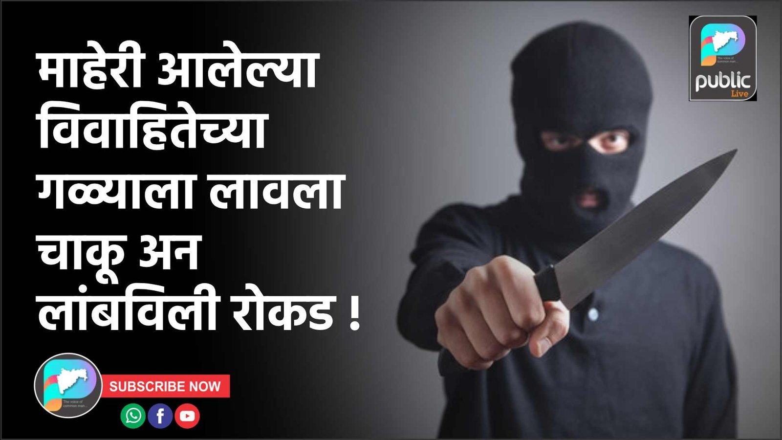 शहरातील शिवाजी नगर हुडको येथे माहेरी आलेली विवाहिता सपना शंकर वाघ (वय २७, रा. पारोळा) ही घरात झोपलेली असतांना, रात्रीच्या सुमारास त्या परिसरातील गजानन बाविस्कर हा त्यांच्या घरात शिरला. त्याने विवाहितेच्या गळ्याला धारदार शस्त्र लावून विवाहितेकडील पैशांचे पाकीट घेवून पसार झाला. ही घटना दि. ७ पहाटे साडेतीन वाजेच्या सुमारास घडली. याप्रकरणी शहर पोलिसात गुन्हा दाखल करण्यात आला आहे.