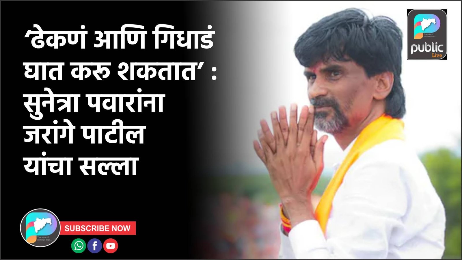 मनोज जरांगे पाटील पुढे म्हणाले की, “सुनेत्रा पवार यांनी आता सर्वांना सोबत घेऊन चालावे. सध्या अनेक गिधाडे घिरट्या घालायला लागली आहेत. अजित पवारांसोबत कधी न दिसणारे लोक आता पुढे येत आहेत. अशा अचानक जमलेल्या लोकांवर लक्ष ठेवावे,” असा सल्लाही त्यांनी दिला. काही अडचणींमुळे सुनेत्रा पवार यांनी तातडीने उपमुख्यमंत्रीपद स्वीकारले असावे, असे नमूद करत जरांगे पाटील म्हणाले की, “पार्थ पवार आणि जय पवार यांना अजित पवार यांनी काही सल्ला दिला असेल, तर त्याचे पालन करावे.”