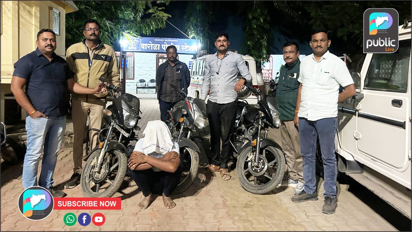 पारोळा शहरात वाढत्या मोटारसायकल चोरीच्या घटनांना आळा घालण्यासाठी पोलिसांनी मोठी कारवाई केली आहे. पारोळा पोलीस स्टेशनमध्ये गु.र. नं. ३०७/२०२४ भा.दं.वि. कलम ३०३(२) अंतर्गत दाखल झालेल्या मोटारसायकल चोरीच्या गुन्ह्याचा तपास करताना स्थानिक गुन्हे शाखेच्या पथकाने एक आरोपीला अटक करून त्याच्याकडून तीन चोरीच्या मोटारसायकली जप्त केल्या.