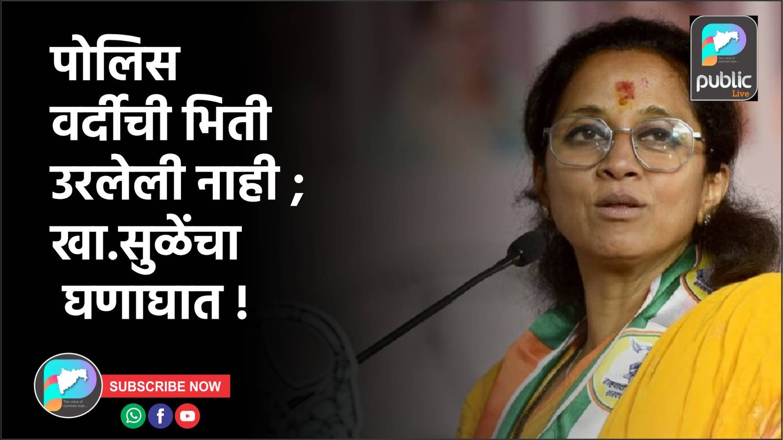 Home » राष्ट्रीय » पोलिस वर्दीची भिती उरलेली नाही ; खा.सुळेंचा घणाघात !