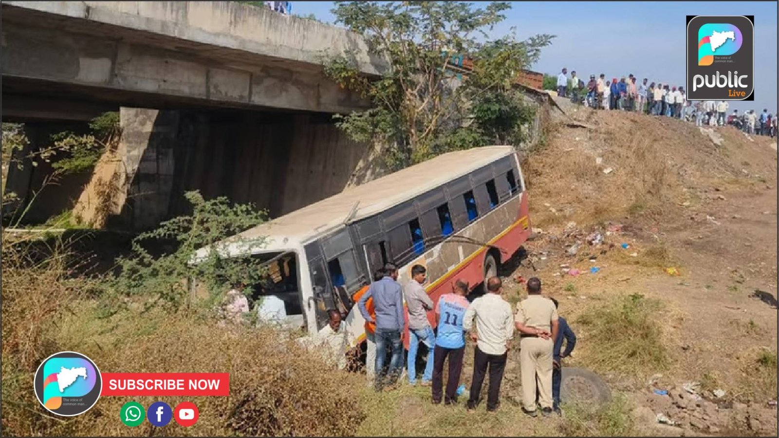 घटनास्थळावरुन मिळालेली माहिती अशी, दहिवडी डेपोची बस ज्योतिबाकडे निघाली होती. तांदुळवाडीजवळ ती पुलावरून २५ ते ३० फूट खाली कोसळली. बस तोंडावर खोचल्यामुळे बहुतांश प्रवाशांच्या तोंडाला मार लागला आहे. तसेच ड्रायव्हर वाय. डी. मोकर गंभीर जखमी झाले असून त्यांना कोल्हापूर येथील सीपीआर हॉस्पिटल व वाहक माधुरी खरात यांना प्रकाश हॉस्पिटल इस्लामपूर येथे उपचार सुरु आहे. प्रवाशांना शासकीय व विविध खासगी हॉस्पिटलमध्ये उपचारासाठी दाखल केले आहे. गाडी पुलावरून कोसळल्यामुळे गाडीची पुढील चाके तुटून पडली आहे.
