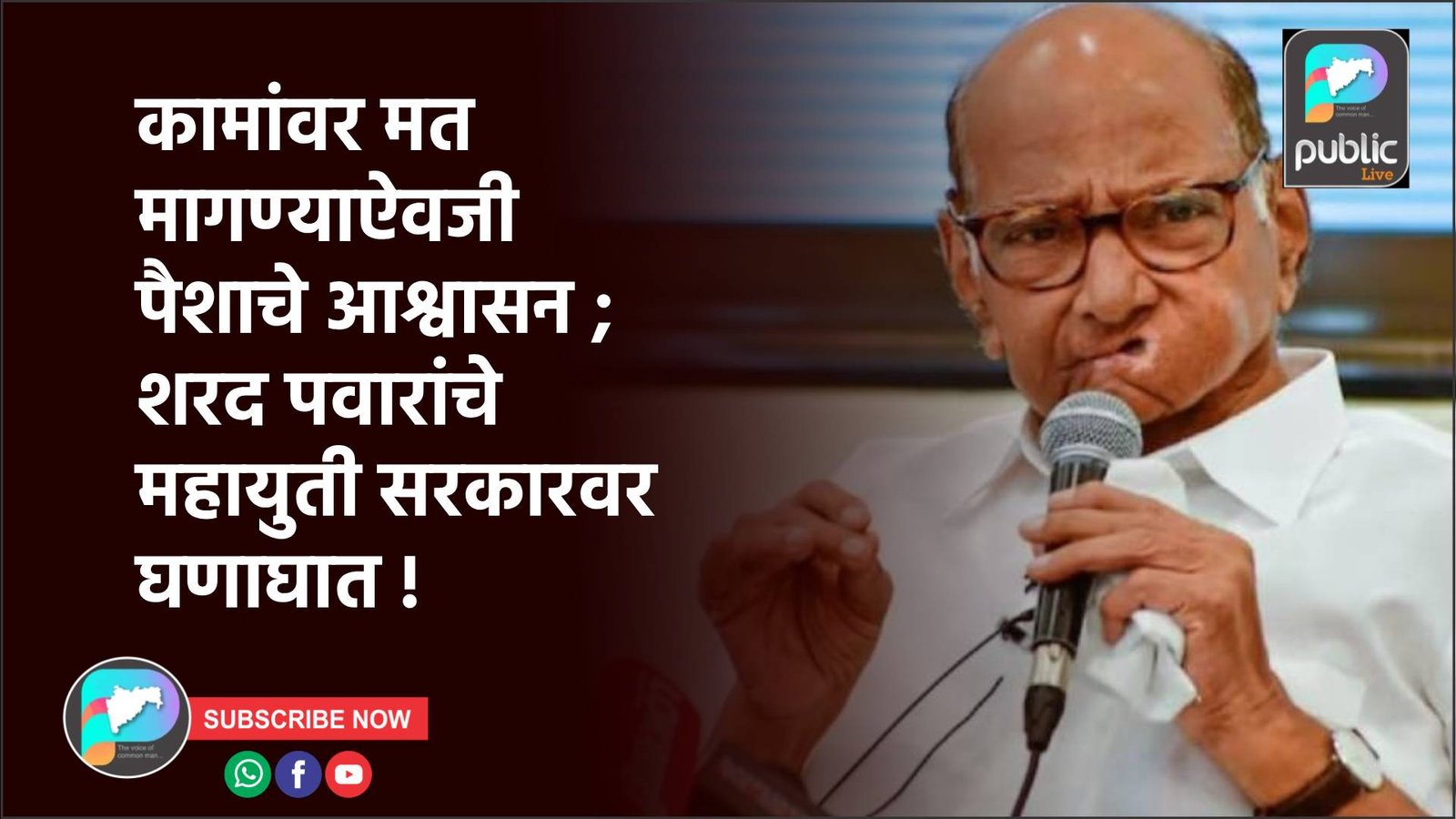 कामांवर मत मागण्याऐवजी पैशाचे आश्वासन ; शरद पवारांचे महायुती सरकारवर घणाघात !