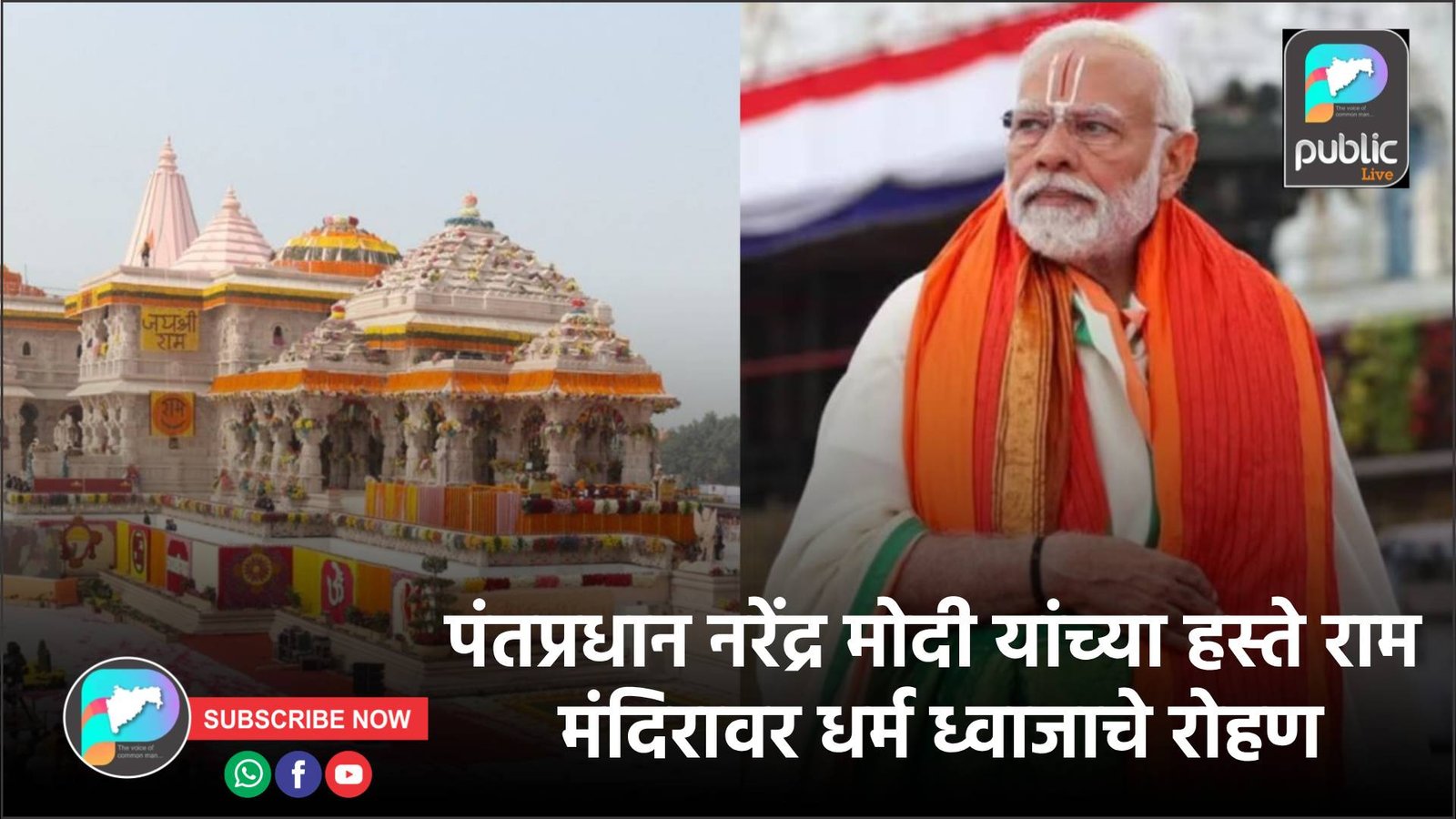 पंतप्रधान नरेंद्र मोदी यांच्या हस्ते राम मंदिरावर धर्म ध्वाजाचे रोहण