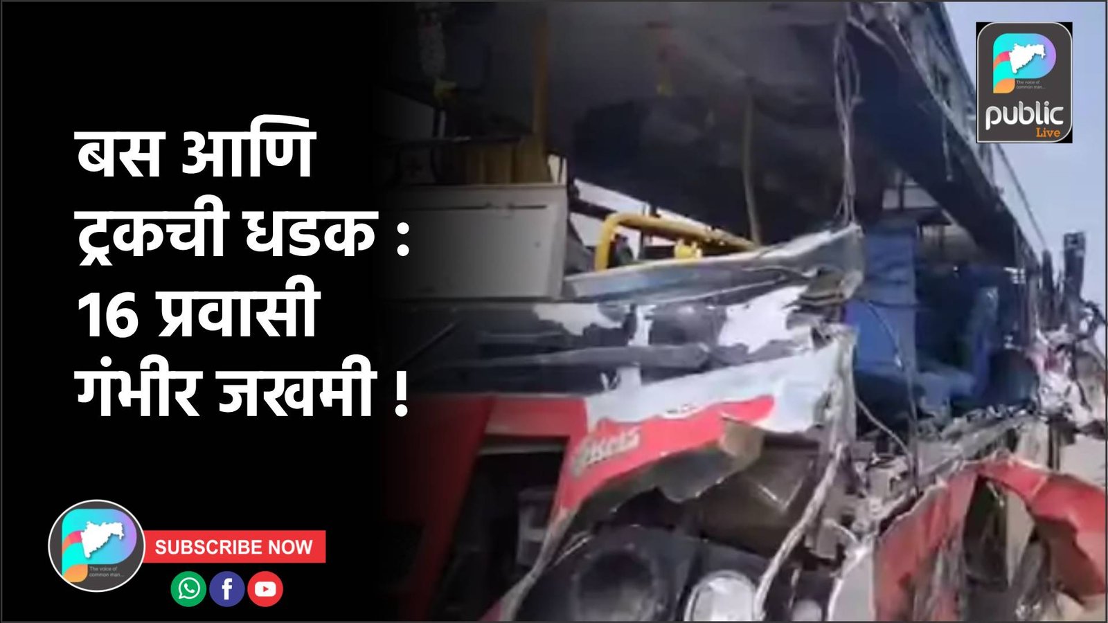 बस आणि ट्रकची धडक : १६ प्रवासी गंभीर जखमी !