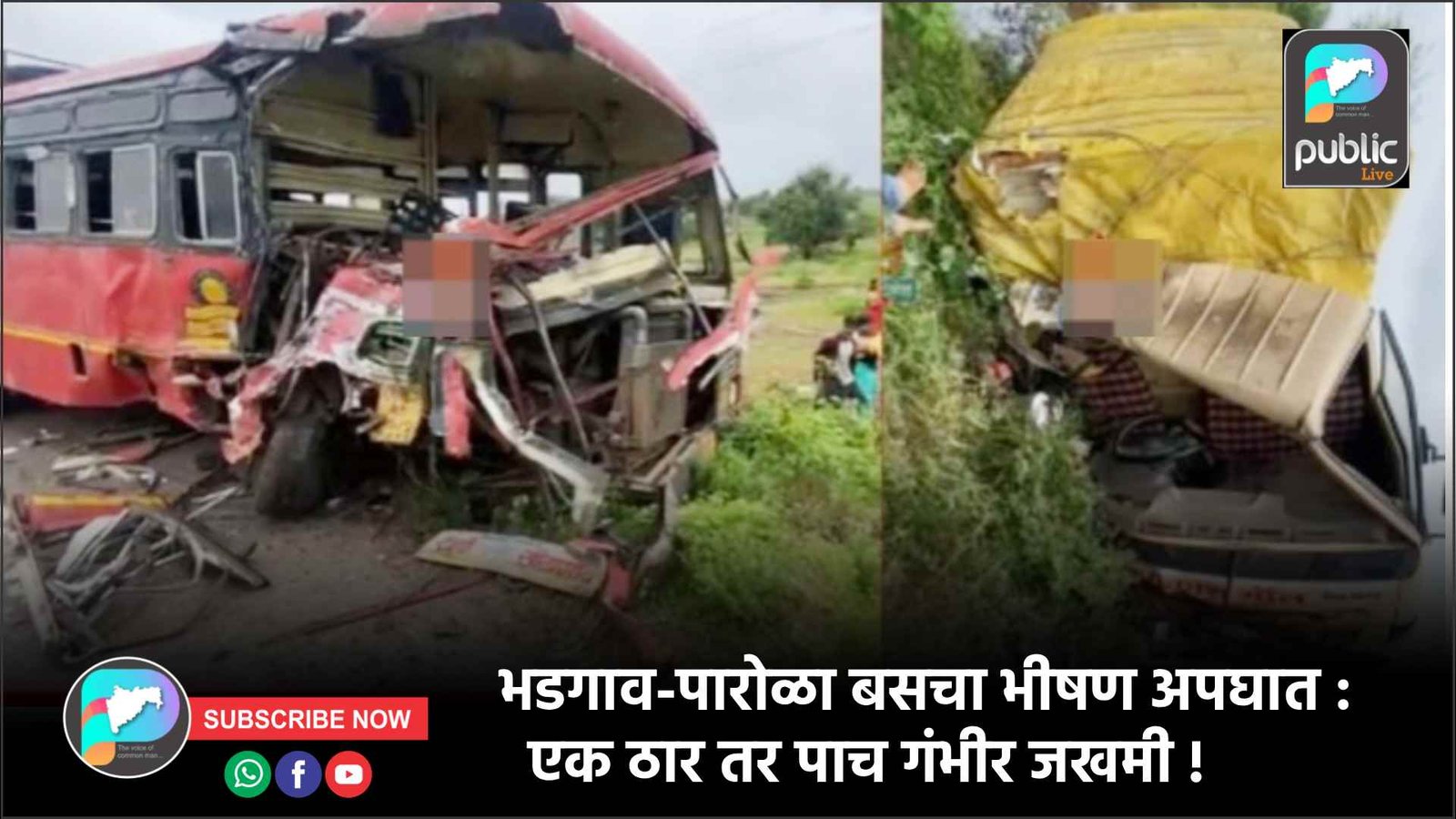 Home » राष्ट्रीय » भडगाव-पारोळा बसचा भीषण अपघात : एक ठार तर पाच गंभीर जखमी !