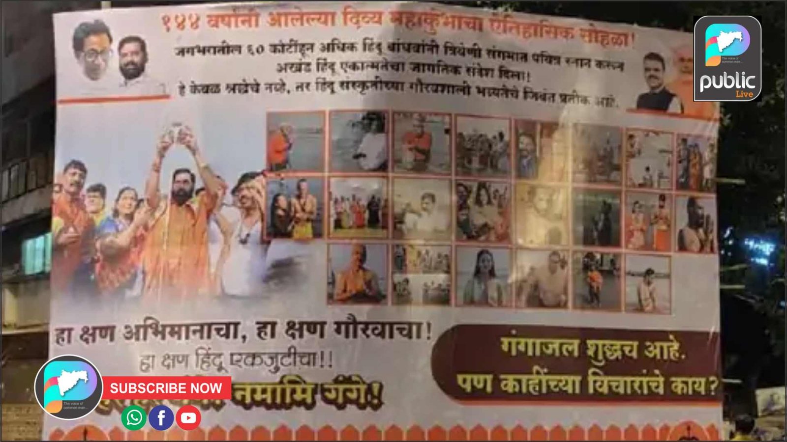 144 वर्षांनी आलेल्या दिव्य महाकुंभाचा ऐतिहासिक सोहळा! जगभरातील 60 कोटींहून अधिक हिंदू बांधवांनी त्रिवेणी संगमात पवित्र स्नान करून अखंड हिंदू एकात्मतेचा जागतिक संदेश दिला! हे केवळ श्रद्धेचे नव्हे, तर हिंदू संस्कृतीच्या गौरवशाली भव्यतेचे जिवंत प्रतीक आहे. हा क्षण अभिमानाचा, हा क्षण गौरवाचा, हा क्षण हिंद एकजुटीचा. हर हर गंगे! नमामी गंगे! गंगाजल शुद्धच आहे पण काहींच्या विचारांचे काय?” असा खोचक सवाल शिवसेनेच्या या बॅनरमधून विचारण्यात आला आहे.