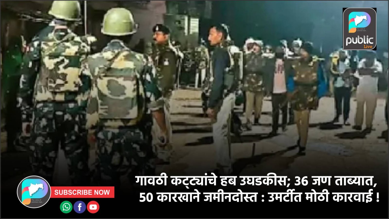 छाप्यावेळी संपूर्ण गावाने पुणे पोलिस पथकाला विरोध करण्याचा प्रयत्न केला. मात्र शीघ्रकृती दल, अश्रुधूर पथक आणि मध्य प्रदेश एटीएसच्या मदतीने पोलिसांनी कारवाई यशस्वीपणे पार पाडली. या मोहिमेत तब्बल ५० बेकायदा शस्त्रनिर्मिती कारखाने उद्ध्वस्त करण्यात आले तर ३६ संशयितांना ताब्यात घेण्यात आले. याशिवाय २१ पिस्तुले, अनेक बॅरल, मँगझीन स्प्रिंग, पाईप्स आणि शस्त्रनिर्मितीची इतर सामग्री जप्त करण्यात आली.
