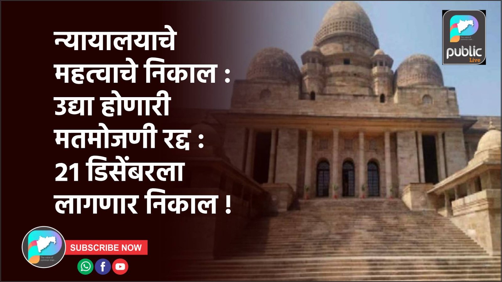 न्यायालयाचे महत्वाचे निकाल : उद्या होणारी मतमोजणी रद्द : २१ डिसेंबरला लागणार निकाल !