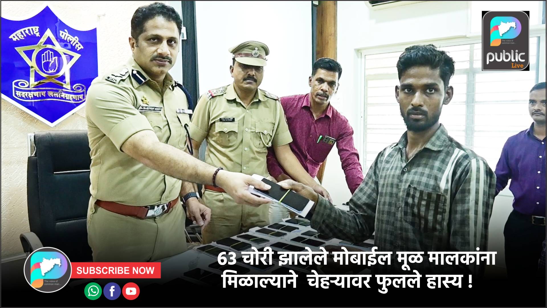 जिल्ह्यात वेगवेगळ्या ठिकाणी गहाळ झालेल्या ६३ मोबाइलचा सायबर पोलिसांनी शोध लावून ते हस्तगत केले. हे मोबाईल शनिवारी (१८ ऑक्टोबर) जिल्हा पोलिस अधीक्षक डॉ. महेश्वर रेड्डी यांच्याहस्ते मूळ मालकांना परत देण्यात आले. दिवाळी सणात मोबाइल परत मिळाल्याने सर्वाच्या चेहऱ्यावर हास्य फुलले. जिल्ह्यातील सार्वजनिक ठिकाणाहून व बाजारातून महागडे मोबाइल गहाळ झाले होते.