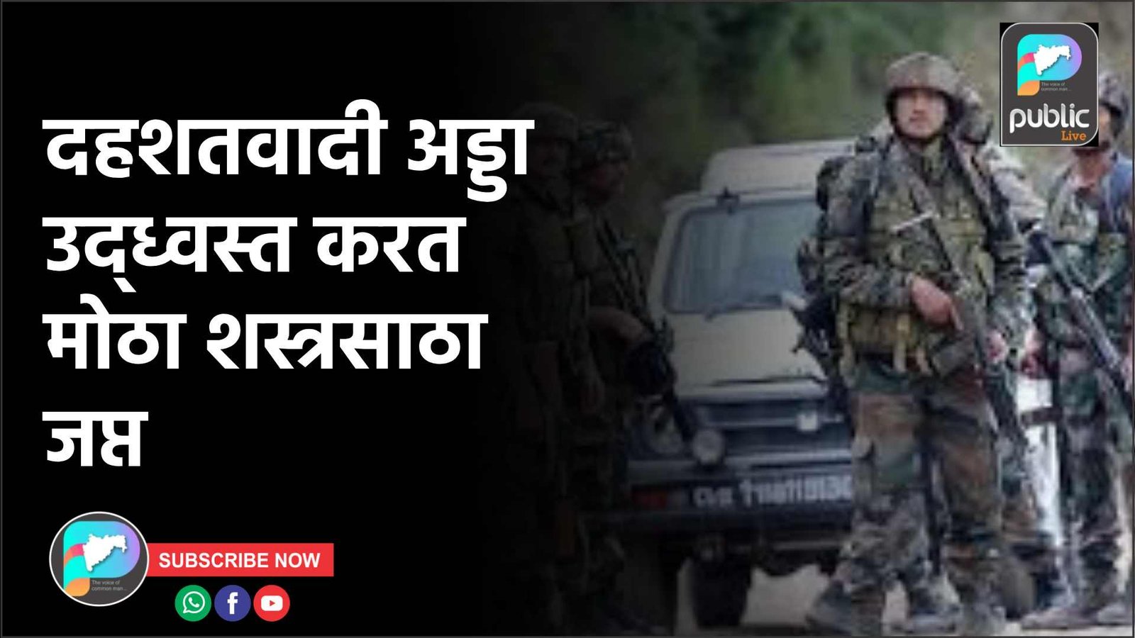 देशातील जम्मू-काश्मीर मधील पुंछ जिल्ह्यातील सुरनकोट परिसरात पोलिस आणि लष्कराच्या संयुक्त शोध मोहिमेदरम्यान दहशतवाद्यांचा एक अड्डा उद्ध्वस्त केला. या कारवाईत सुरक्षा दलांनी मोठ्या प्रमाणात शस्त्रे आणि साहित्य जप्त केले आहे.