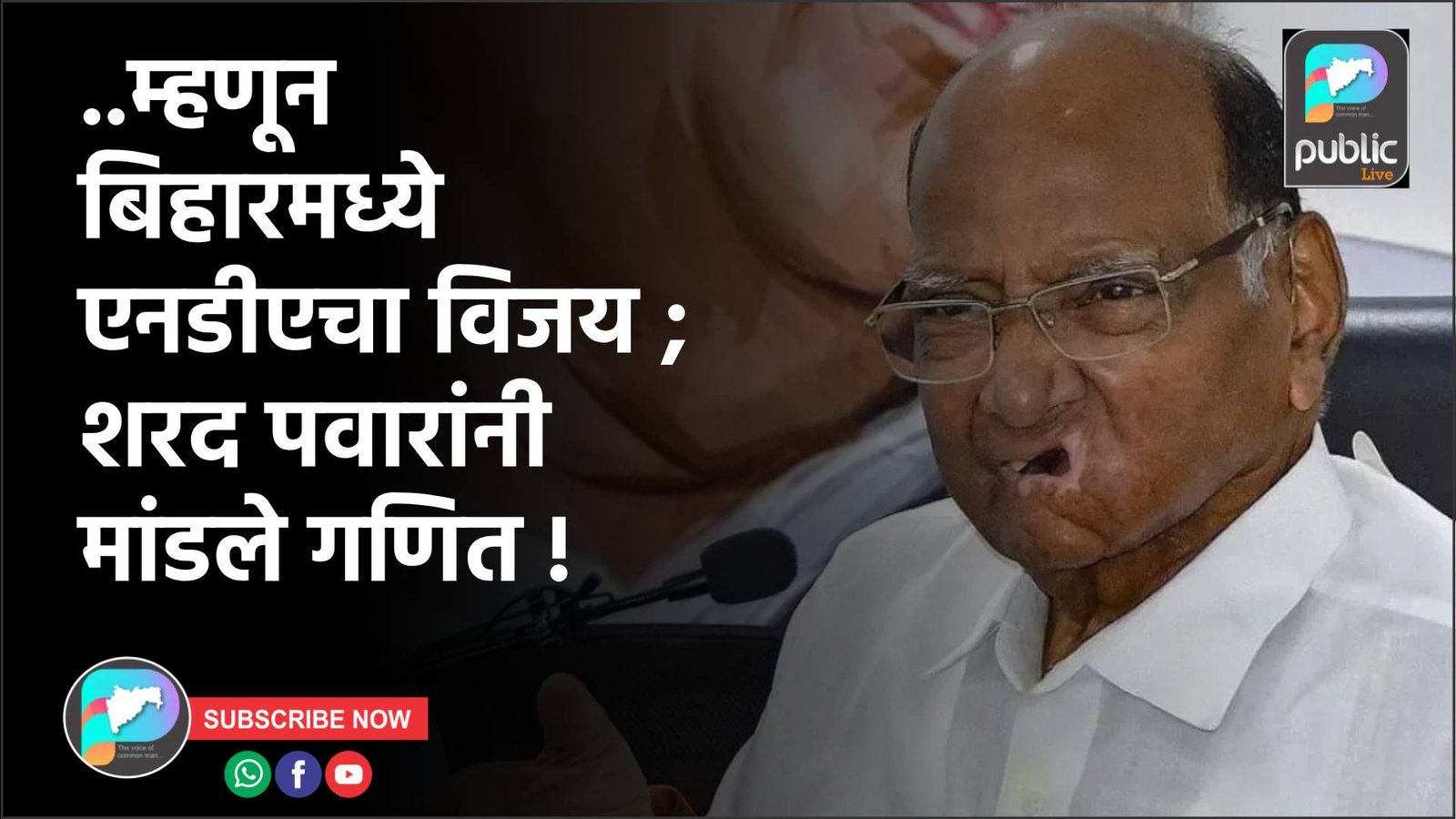 बिहार विधानसभा निवडणुकीत भाजप – जदयु आघाडीचा दैदिप्यमान विजय झाला. यामुळे मुख्यमंत्री नितीशकुमार यांच्या नेतृत्वात तिथे एनडीएचे सलग 5 व्यांदा सरकार येण्याचा मार्ग मोकळा झाला आहे. विरोधकांनी या निवडणुकीत मोठ्या प्रमाणात मतांचा गैरव्यवहार झाल्याचा आरोप केला आहे. या पार्श्वभूमीवर शरद पवार यांनी वरील दावा केला आहे. ते शनिवारी बारामतीत पत्रकारांशी बोलताना म्हणाले, बिहार निवडणुकीपूर्वी सरकारने तिथे मोठ्या प्रमाणात पैसै वाटले. त्यामुळे तिथे वेगळा निकाल लागण्याची शक्यता शक्यता नव्हती.