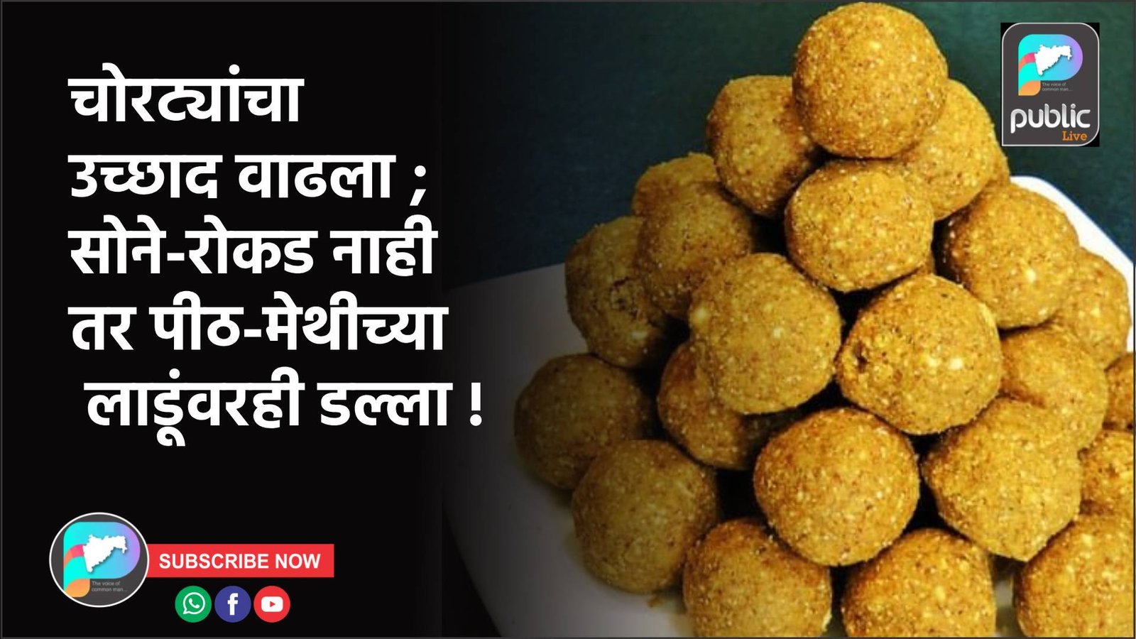 बोदवड तालुक्यात गेल्या दोन महिन्यांपासून चोरीच्या घटनांनी अक्षरशः डोके वर काढले असून नागरिकांमध्ये भीतीचे वातावरण निर्माण झाले आहे. विशेष म्हणजे चोरट्यांना आता सोने, चांदी किंवा रोकड मिळाली नाही तर ते घरातील गव्हाचे पीठ आणि हिवाळ्यासाठी बनविलेले मेथीचे लाडूही घेऊन जात असल्याने नागरिक हैराण झाले आहेत. मनूर गावात एकाच रात्री सात घरफोड्या झाल्याने संतापासोबतच या विचित्र प्रकाराबाबत चर्चा आणि थोडी गंमतही रंगत आहे.