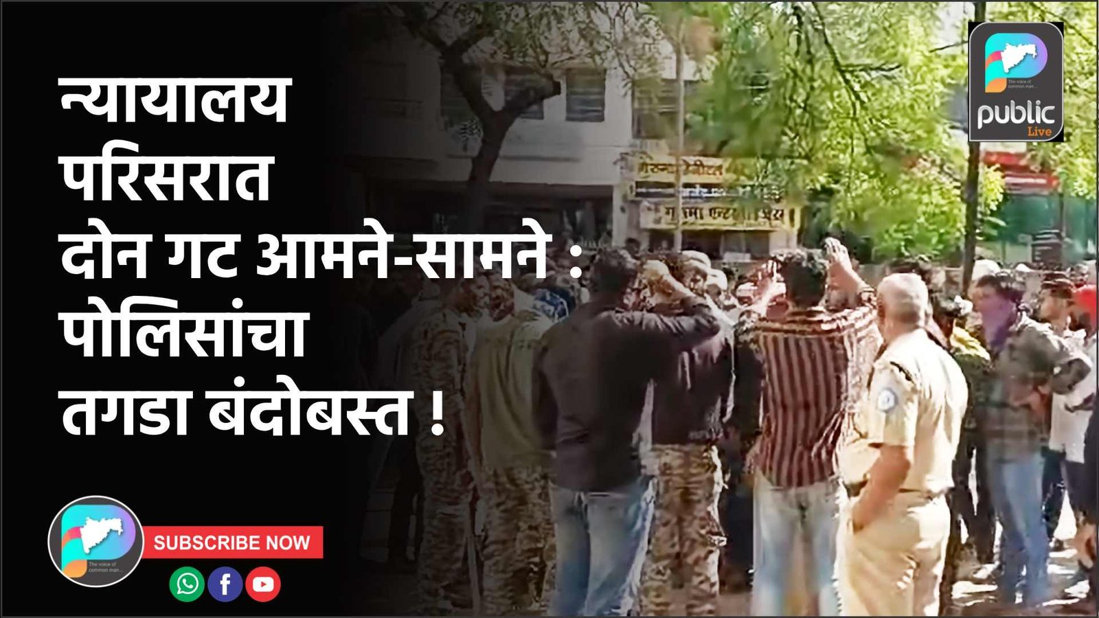 लहान मुलांना पळवून नेत असल्या संशयावरुन तलवार घेवून धार्मीक स्थळातील पाण्याचा माठासह प्लास्टीक टाकीची तोडफोड करणाऱ्या संशयित प्रवीण रमेश कोळी (रा. पिंजारीवाडा, वाल्मिक नगर) याला सोमवारी न्यायालयात हजर करण्यात आले. याठिकाणी दोन्ही गटातील तरुणांनी मोठ्या प्रमाणात गर्दी करीत घोषणाबाजी केल्याचा प्रकार सोमवारी दुपारी न्यायालयाच्या आवारात घडला. यामुळे परिसरात ताणावाचे वातावरण निर्माण झाले होते. दरम्यान, संशयित प्रवीण कोळी याला तीन दिवस पोलीस कोठडी सुनावण्यात आली आहे.